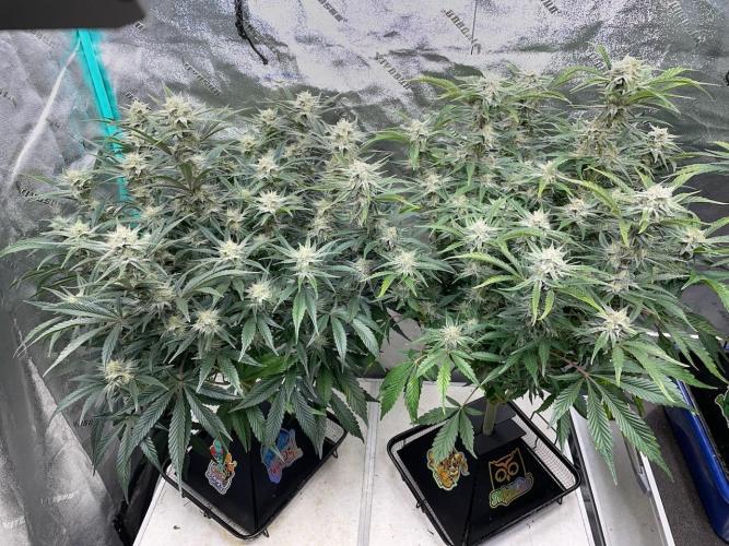 EazyRider Finally got a chance to do a bit of pruning after much more strategic defoliation. Both smq are very typical night owl, the Mango Isle on the other hand is doing that tiny leaf thing that happens occasionally, I am expecting her to fatten up over the next two weeks but she's so different from my previous Mango Isle that I'm not really sure what is happening.