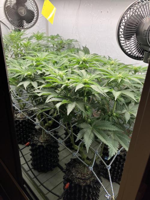 loomerlope Did some defoliation and lollipoping this week, one plant looks more sativa than the others and has a greater stretch. DLI is ~29 now, all looking good.