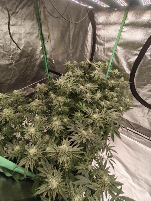 # Last day of week 4 after flip to 12/12. Plants are drinking like crazy and growing very beautiful.