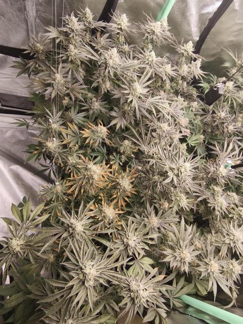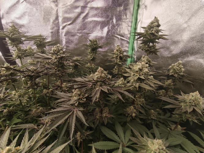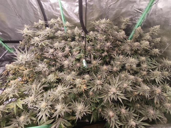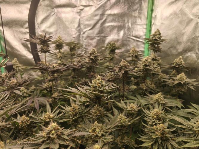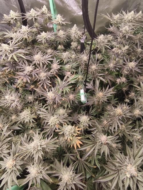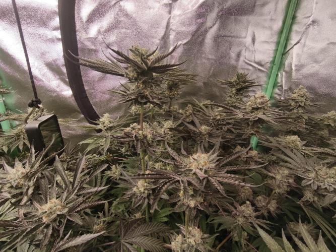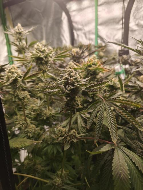 Jessi576 👉 Week 6 Bloom 👈 👉 Week 11 Overall 👈 👉 13.10.2025 - 19.10.2025 👈 👉 Days overall : 64-70👈 👉 Days bloom : 36-42 👈 👉 Update 15.10.2025: # Buds are currently developing perfectly # Plants got their last adjustments in light intensity and nutrient amounts this week # Temperatures will be lowered around 2 degrees in daylight starting in the next week until harvest. 👉 Update 19.10.2025: #last day of Bloom week 6 #heavy defoliation day 42 Bloom #uploaded pictures after defoliation