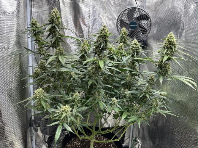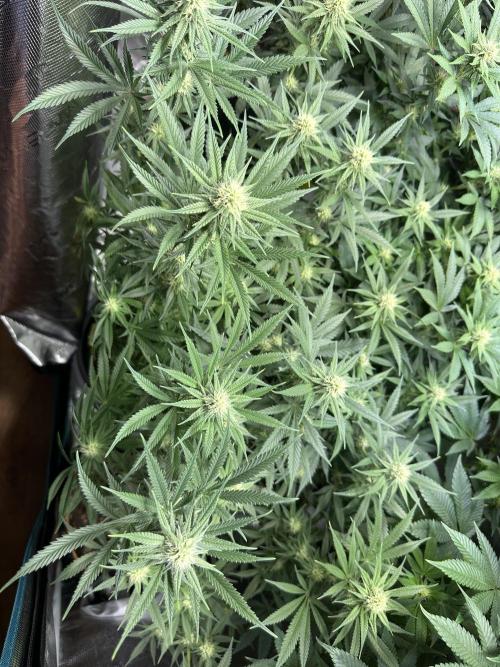 Die Gorilla hat aufgehört zu stretchen und ist jetzt in Blüte Woche 4. sie ist jetzt 70x65x80cm was schon ganz gut ist 😁