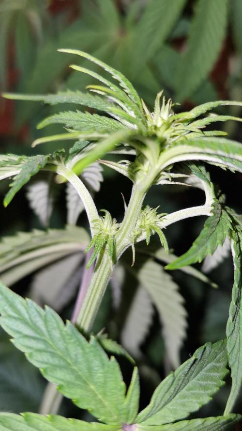 GhostTerpZ I've removed the Scrog net again because it's simply too small for the box and I think the plants will only grow better with Lst. Tomorrow it will be switched to 12/12 and fertilized for the last time with grow fertilizer. The BG, well, I like it but I also don't like it because I'm worried about a hermaphrodite due to the mutation, but I have to keep an eye on it. The Lemon Cherry Runtz already has two stigmas despite being 18/6. I think it got some autoflower genes from Fastbuds autoflower varieties somewhere. There's nothing wrong with the Papayton, it's grown perfectly from the start. All in all, unfortunately a problematic grow, but I've had worse plants.