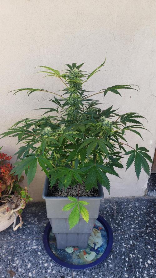 La planta se la ve bien, aunque nose si le faltara más agua pero he notado todos los días las hojas como caídas, pero bueno, los cogollos se van formando pero aun sin tanto olor.