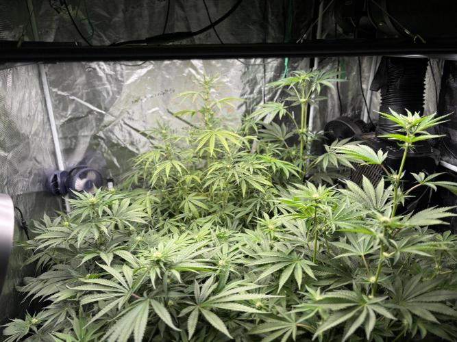 Crop_Top This past week was a busy one. Put a lot of work into the grow space and prepping them to switch. Moved over to the 5x5 tent and set up the netting. Went through a lot of defoliating spread out through the week to make sure it went as stress free for the plants as possible and then lollipopped the plant before changing over to