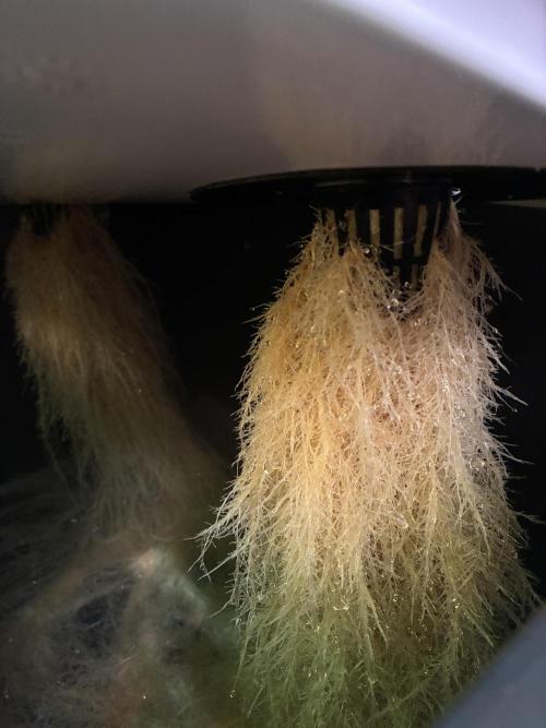 This week I had to give them more space and topped them to make use of the space. The I had to reduce the dry intervals and increase the spraying time to match their needs.