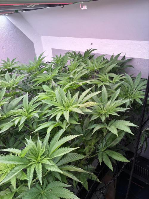 Did nothing besides putting nutrients und water in the system. Spreaded the plants every 2 days to fill the space. Week 8 will start with 42h of darkness and flip to 12/12 afterwards.