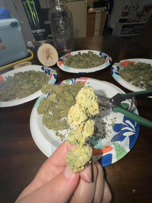 @yan402, Thank you! Everything is pretty dry to the point that it’s in a jar but doing the final trim and letting it sit on a plate over night I stuck the trim into a bag to hold over for butter next weekend and it’s just so sticky it looks like one giant bud, this strain is definitely worth growing again, there was a shit ton of sugar leaves though!