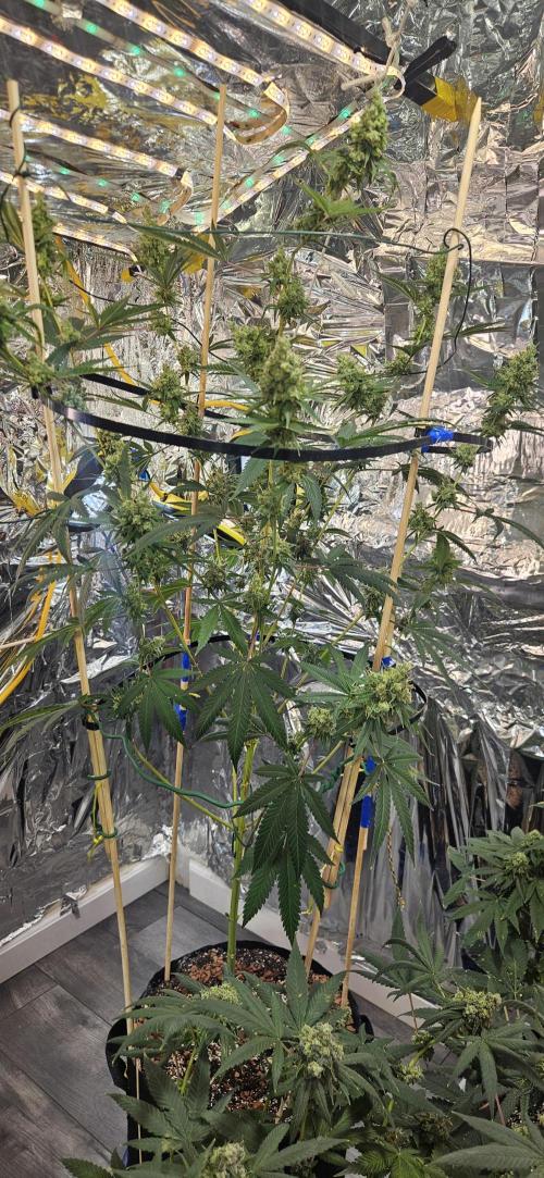 tbombs321 So this is actually week 4. Everything is going some aside from one hermie which i cut off the effected buds and moved to a different room. And had a overwatering issue where my auto system sayed on longer that was set. My fault should have been tested more cause it was a new setup. But all plants have recover except one which is slow I sure is because it is in a plastic pot and much slower to remove water that the fiber pots. Also started setting up a new more permenant grow room this week which is where the seedling GG4 autos will be moving to in a week or so. That diary will be up soon.