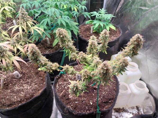 Papablob 25/08 Je ne pourrais pas dire pourquoi, mais je sent qu'une petite défoliation pourrait être bénéfique. Sinon ont peut dire que tous vas bien. 😁👍