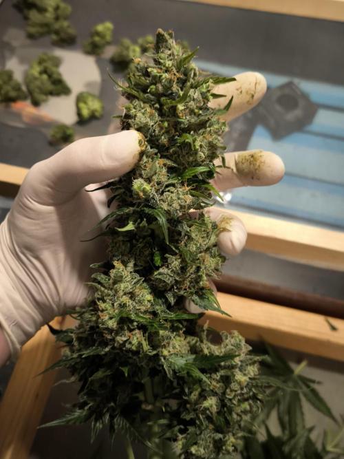 DevelGrow Es ist geschafft! Velvet Candy Widow Auto von Monkey Genetics wurde geerntet! Nach zwei Tagen waren 290,12g fertig getrimmt allesamt nur Feste harzige buds! Ab in die dry ferm bags und warten ✌️🍀💚🍀