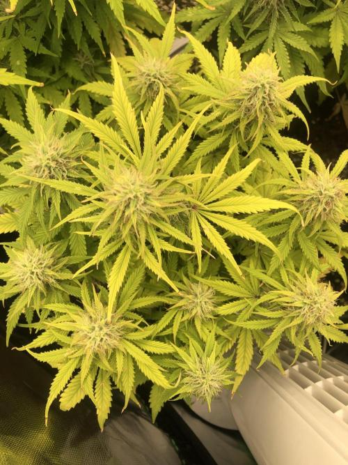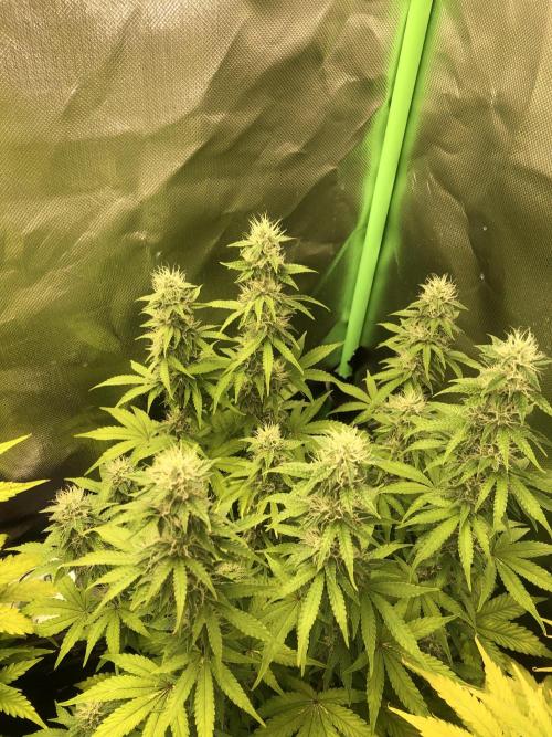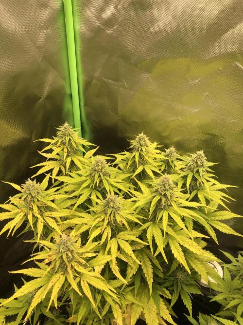 Scandic Day 28 from seed and the first week of flower! I finally got things dialed back in and the plants should thrive this coming week. 2 out of 4 have a little nutrient burn but I just watered them all with normal water with the PH of about 6,6. Run off was 6-700 ppm which im happy with. PH about 6,5 🙏 Next water will be a feed. And then ill water again and then feed. But offcause watching the plants reaction meanwhile. Will update during the week. Comment if you have any tips for me! Still fighting with my humidity. And i Got another SF1000D LED lamp from spider farm on the way. To give the plants some extra light here in the flower time. _____________________________________________________________________________________________________________________________ Day 29 Heavy defoliation on all 4 plants to lower the humidity. I probably did more than I would have if I didnt have such a high humidity. My VPD is alright though for the most of the time. Day time its around 24c and 60% RH Night time its worse and thats why I now have 22 hours light on and only two hours off. Where humidity raises to 69% and down to 21c. Measurements are in canopy height in the opposite corner of my ventilation where I think its worst. Nutrients: I will hold off with the mineral nutrients for the next couple of waterings after I got a slight nutrient burn on some of the plants but I topdressed all 4 plants today anyway with some Bat Guano from Plagron (NPK 3-15-4) because the two plants which I gave it to in the start of the grow (week 2) is also the two strongest plants at this time. I only gave a little this time even though an overdose shouldnt be possible. It will also first set in 2 weeks from now. So a nice boost for flowering. Hopefully it will work great to combine Organic and Synthetic. I heard they call it Synganic. :D Day 31 Had to raise the light period to 23hours. Not ideal. My humidity is too high. I’ve had to buy a dehumidifier for around 40$. And the SF1000D LED lamp has arrived and will be put in the tent tomorrow. Hopefully it will help me on the humidity, now when flowering soon should start for real. Day 32 Watered them all with PH´ed water at around 6,6 which was also what came out. Next time Ill be giving them a small amount of food again. Day 33 Humidity and temp is under control again. And is now in optimal VPD ranges for flowering. Currently 25c and 56% RH.
