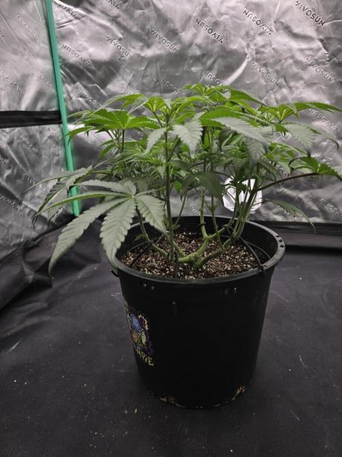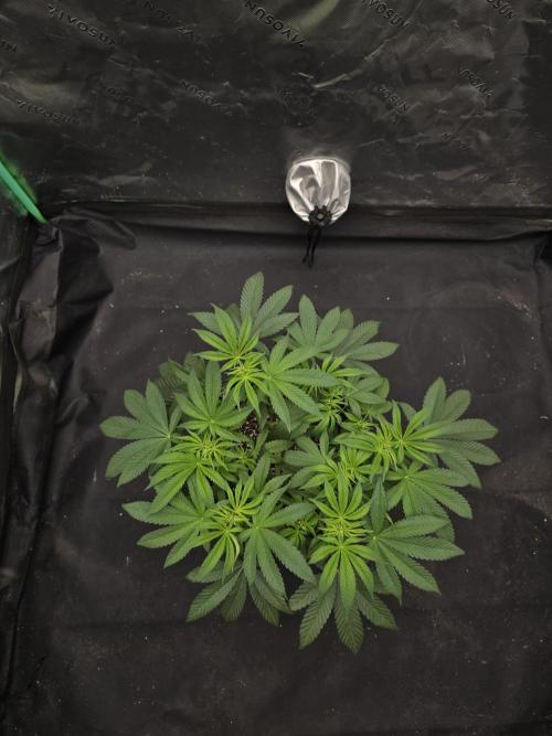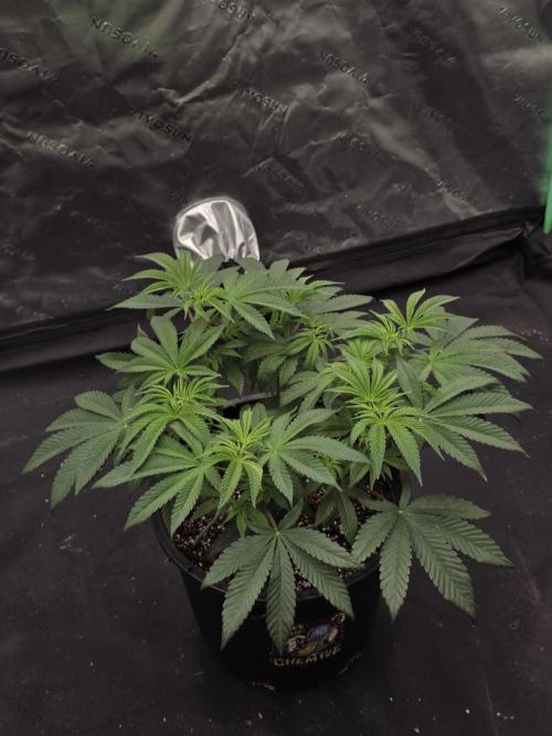 She’s growing really well this week, showing no signs of deficiencies. Her stems are starting to thicken, and overall she looks strong and healthy. Topping is on the table soon, depending on how she continues to grow out.
