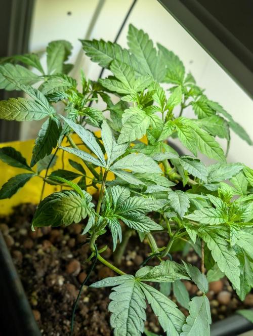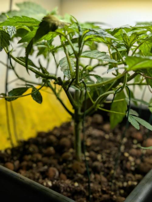 The plant is still under a low-power setup at just 10 watts, so I'm not expecting explosive growth. However, its development is steady and healthy. There’s no rush to get it into the flowering tent, as it's still in use.