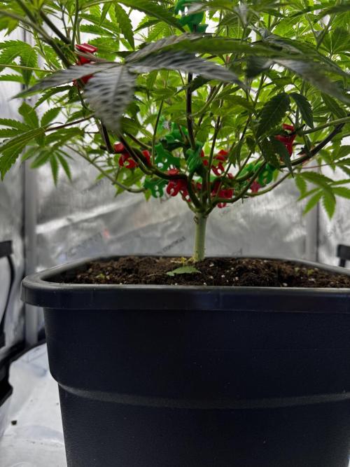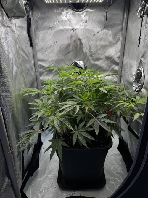 PrinceOfHerbs The plant has become extremely bushy, has been repotted, pruned, topped, and defoliated somewhat. It won't be long before it starts flowering.