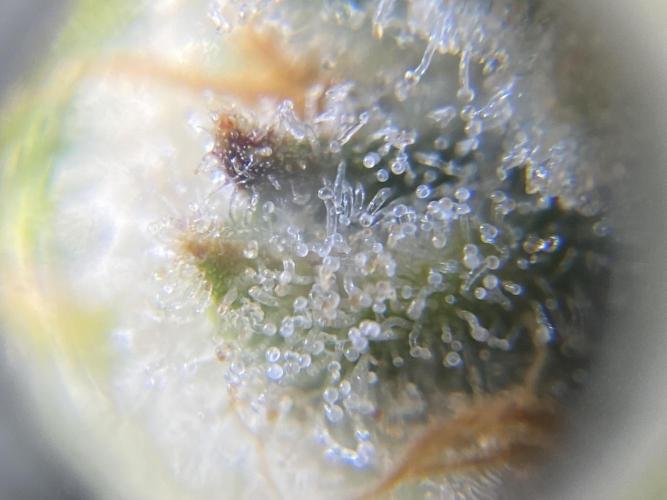 First time i filled the whole tent with delicious terpy buds. Trichome pictures are from Pineapple Slush, the plant will need 1-2 more weeks to finish up. Shes growing big ass dense nuggs filled with trichs.