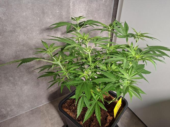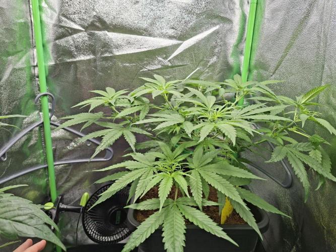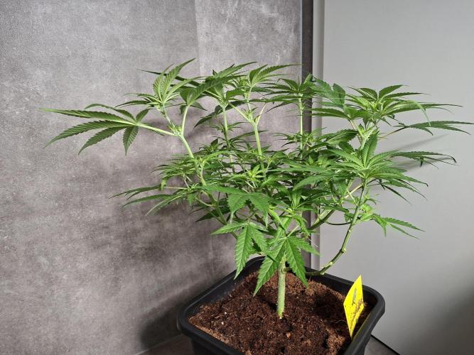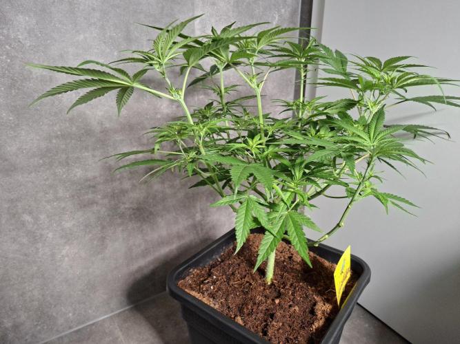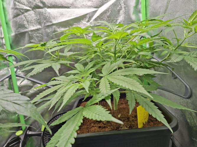 LandraceLarry Damn, my phone broke so the picture quality is worse than usual. I guess the plant looks great but I am worried I gave too much water three days ago because the soil is still rather moist. I have added a little bit of mycorrhiza, Acti-Vera and some Canna Vega. I guess the stem could be thicker so I am starting to expose the plant to some heavy wind every day. Started to reduce air humidity very slowly to 55-60%. My plan is to top this one near the end of week three, give it another week and then I will send it to flowering.