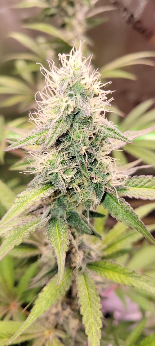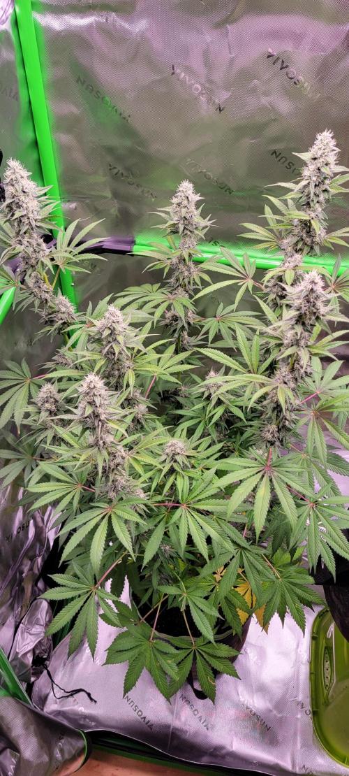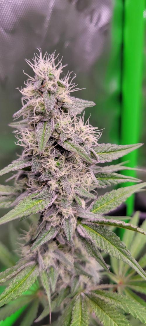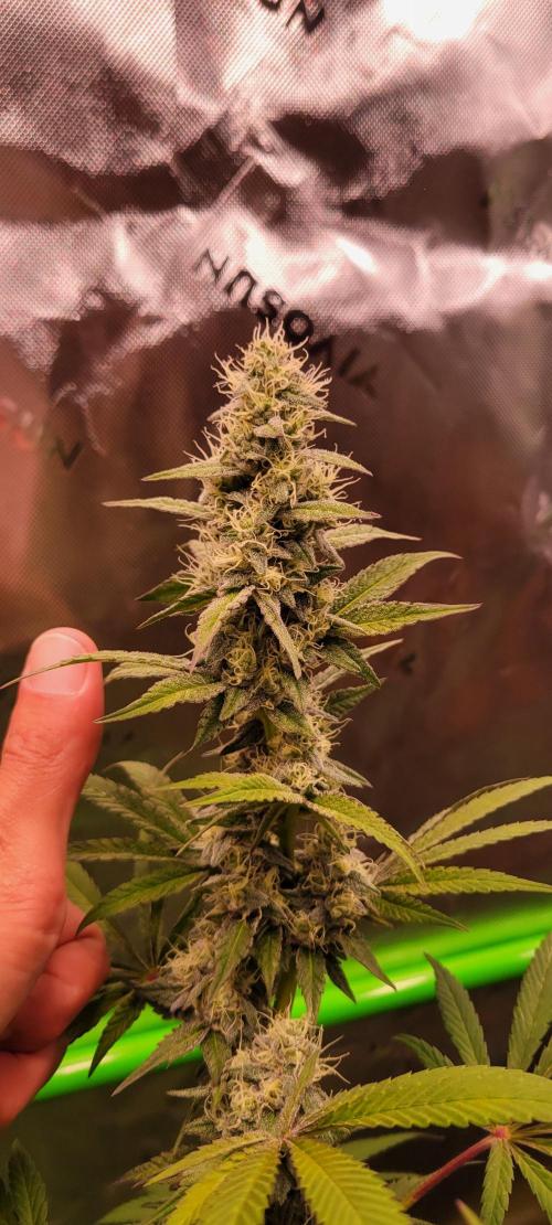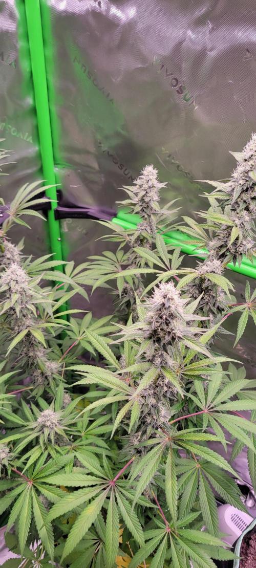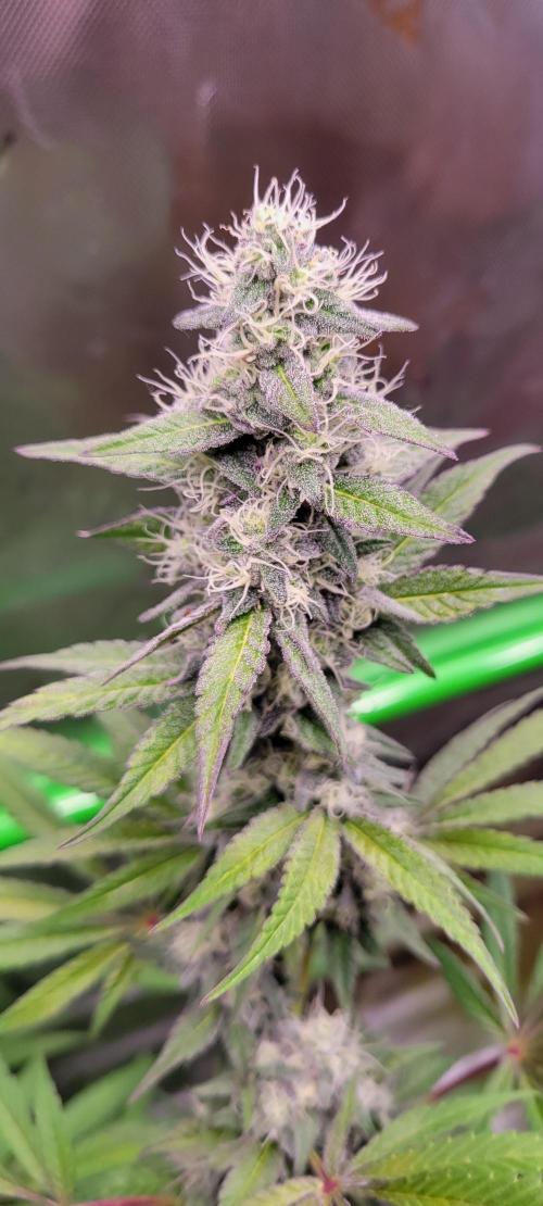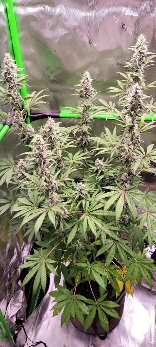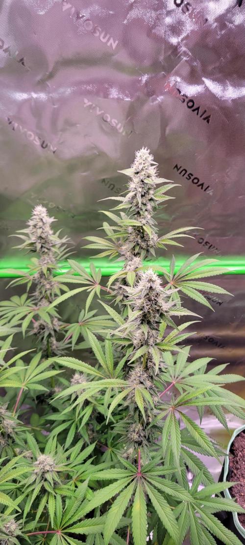 PavementPunk Gave a half strength dose of strive nutrients for the first time. Half strength dose of flower fuel yesterday. First feedings. She is robust and a beautiful color and won't stop stretching! Lol the power of the sun is evident. I may have to super crop her if she keeps it up, im trying to keep her low profile outside. Probably gonna finish her in the tent if i can fit her. There are some bug issues out there to be expected. Ive been doing what i can but i cant neem her anymore. All in all i really like this plant and this has been a pleasant grow. Growers love yall