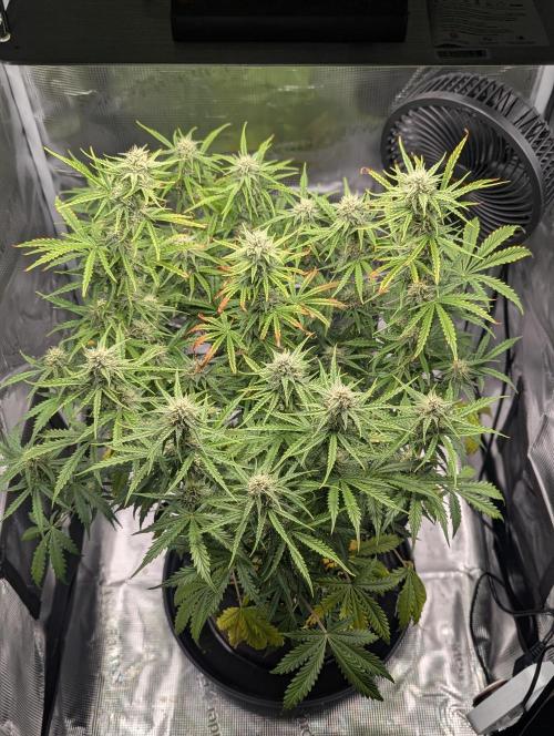 @Aeromatics, I'm thrilled! Also, quite concerned that she'll crowd the entire tent. All of her tops now receive at least 400 PPFD, with the higher ones catching 900 PPFD. So, I'll maybe whip out the SCRoG net one of these days to properly spread her out.