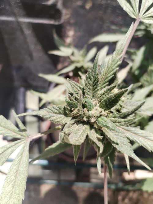 Riboh The greenhouse is officially smelling like a promise of funk-to-come. Supercheese has hit her stride in week 2 of flower—stretching up like she’s trying to peek over the neighbor’s fence. Bud sites are popping everywhere, little clusters of white hairs waving around like they’re trying to flag down pollinators that will never be invited.