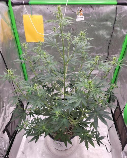 Octopuskush Exploded in growth during preflower. She can fill a whole 3x3 now. Flower sites continue to devolop and stack up. Shes looking to be a good size harvest. No smells yet but we only just got to flower. During flower sometime within the next 2 weeks she will be getting moved to the bigger tent with more light.