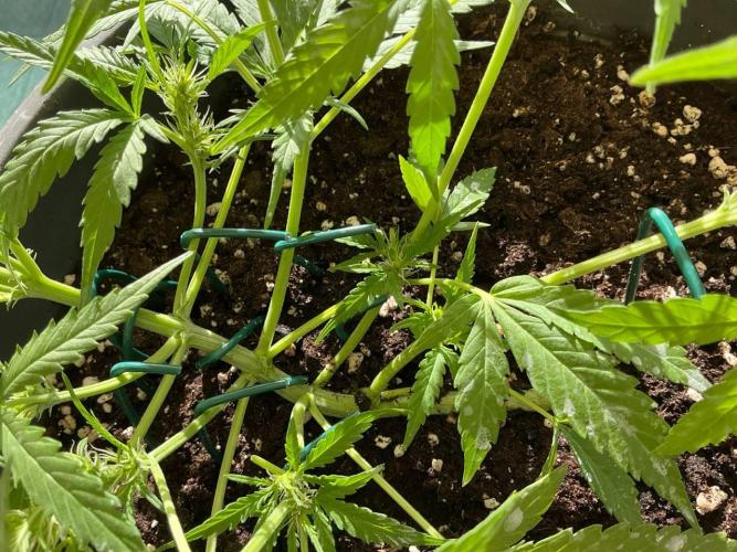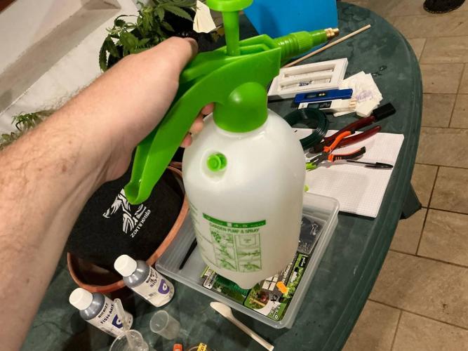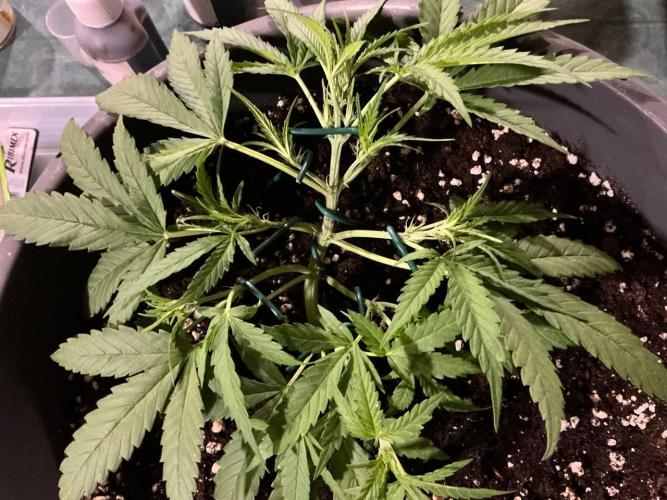 seth Week 4!!😎 This week i strengthened LST ties and will add more in the side branches to encourage opening grow. Is responding very well as expected. I really like to do LST more than topping (at least with autos, the only ones im doing rn).😷 This week we will ramp up to 2L with declorinated tap water with 2ml/L FishMix. 😋 In the early stage of preflowering i use to spray diatomite for a general cleaning😇 Ph 6-6.2 PPM 300-400