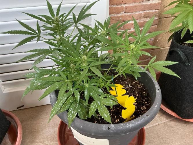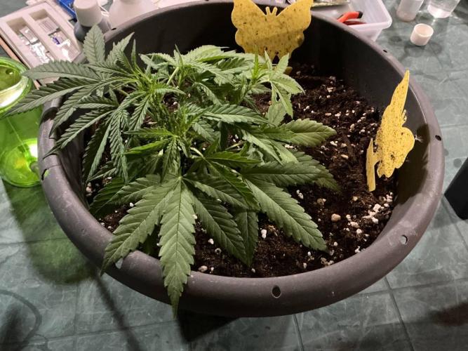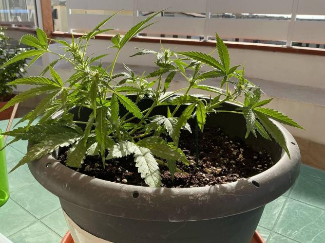 seth Entering late week 2😍 This week will transplant all the plants in 15L pots. 2 of them (LST-only) will be put in side pot in order to handle LST easier. So 2 out of 4 plants has longer internode length and i decided to LST-only the 2 with more internode length and to top the other 2 with less internode length. Pink rozay will grow like the BB, in light mix 100% and i will use Biobizz chemical nutrients. Today start with 1ml/l of Fishmix and 2ml/l of Root-Juice. U can appreciate the side positioning of the plant in order, as i said, to handle lst easier. Irrigation ramp up at 1L with 5.8PH and 280PPM This plant is greater than the other ones with longer internode size. I put the mycorrhizae in the soil because I forgot to put it on the roots when I transplanted it. As u can see 1L was not enought to let all the mico powder to penetrate in the soil, i will do it next irrigation.😝