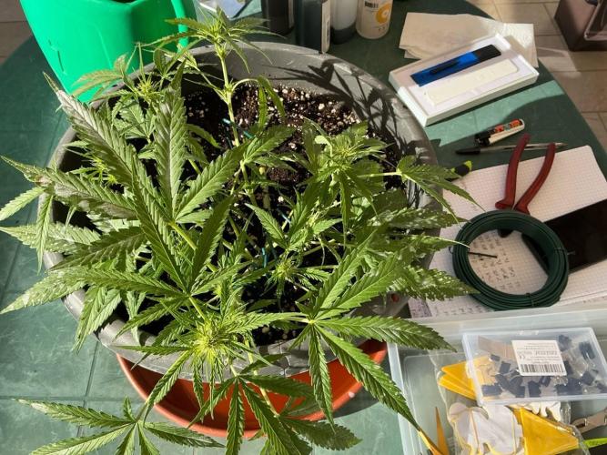 seth Week 3 here!!! Starting LST this week, i always like to start it.😎 Classic move classic first bending that i will lower it further in next days monitoring daily as always. This plant is normal than the BB so we will handle it more confident. For LST is use a 2.7mm tension cable, inserting it only after irrigation to ensure sticking in soil. Irrigating her with 1L of declorinated tap water and FishMix & RootJuice. PH 6 PPM 345 (This run i have lowered all the nutrients doses, we will see !)😈