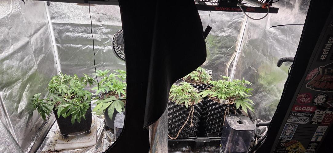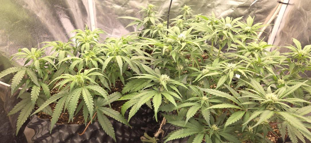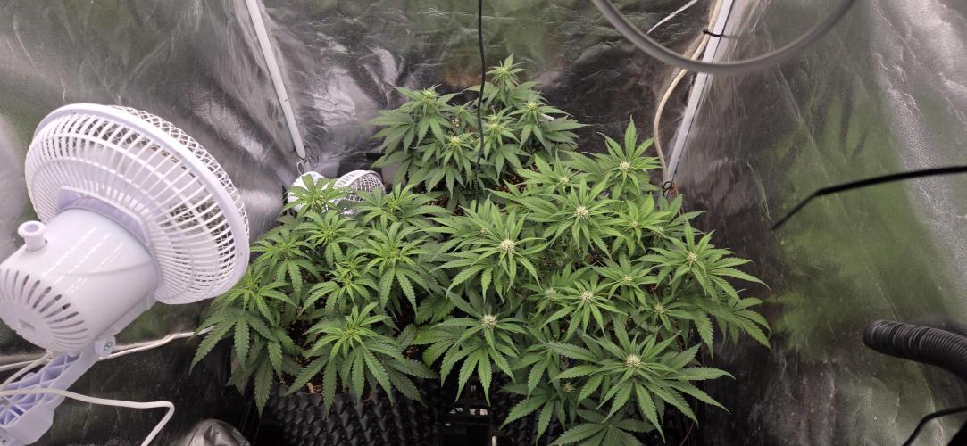 Spacehaze123 Flower has now fully set in on the lemon cherry cookies and the blue dream (the small one in the back). The chem candy seems to be lagging behind a little bit. This will not be a good run I guess :p. But I'm happy with what I get. Can't wait to get the tent free for one of the photoperiods though xD.