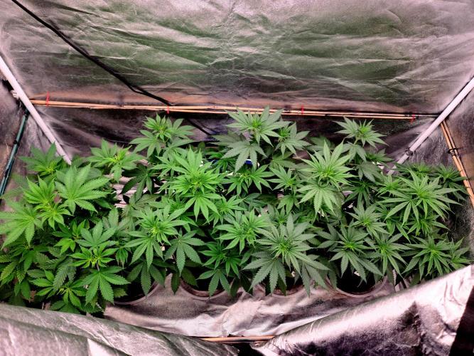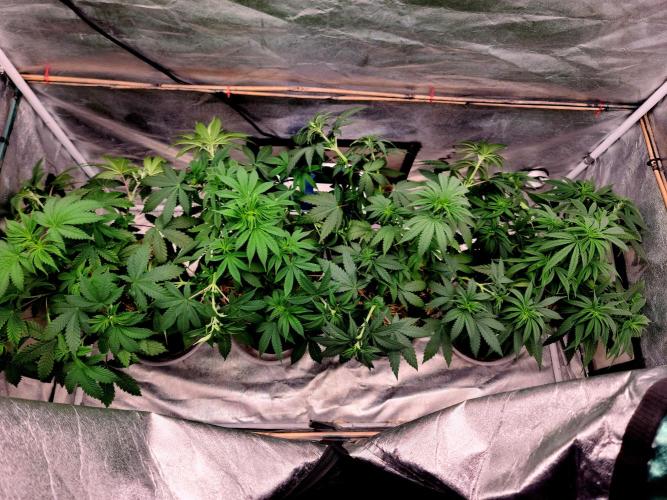 Osirisgreens The ladies are coming along nicely, will be flipping into flower in a week. I've done some deleafing on big fan leaves and saved some big leaves to roll a cannagar later and use the leaves to wrap it