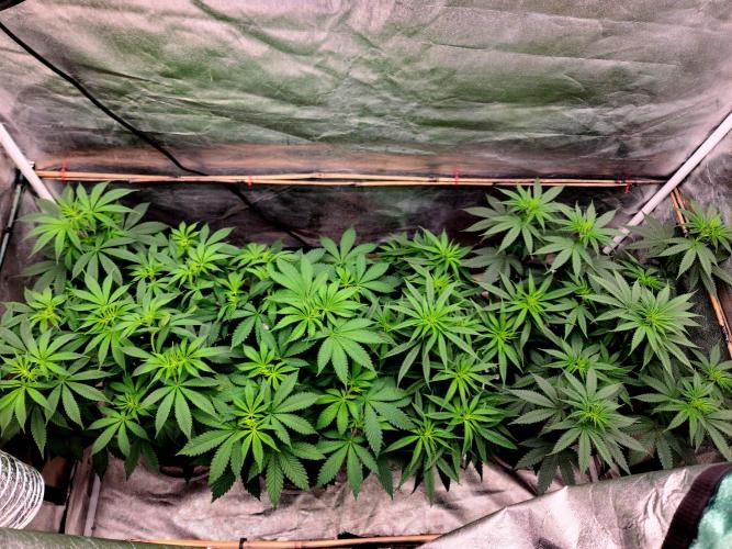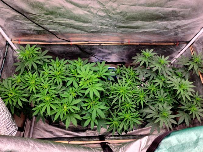 Osirisgreens Week 1 of pre-flower. The girls look and smell amazing. Once you open the tent the smell kicks you in the face, you can smell it in thw whole house. I snacked a couple branches when I was hst but then healed well. That's one reason I use the lunar cycle to help when I do thing to the plants on the right time to heal the plant faster n less stress.