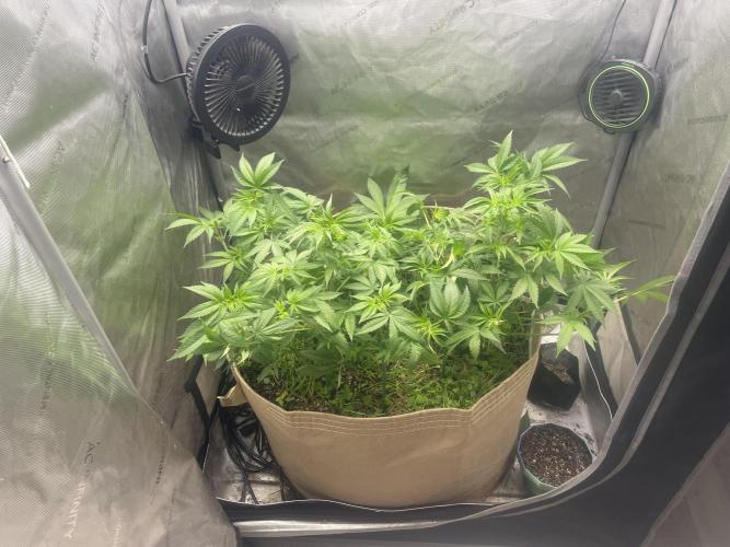 Growing very nicely along with number 3. Larger leaves and shorter height. Going to start training it here in the next week. Going to trim the lower leaves to motivate it upwards