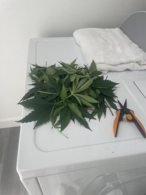 I did a massive defoliation today October the 11th. I really wish I took photos of the plant before doing it but I did get a photo of all the leaves that were removed.
