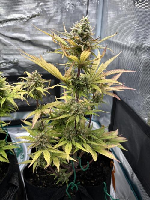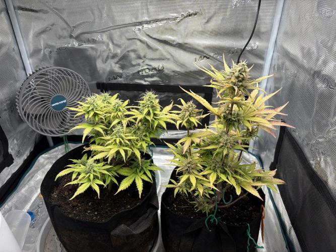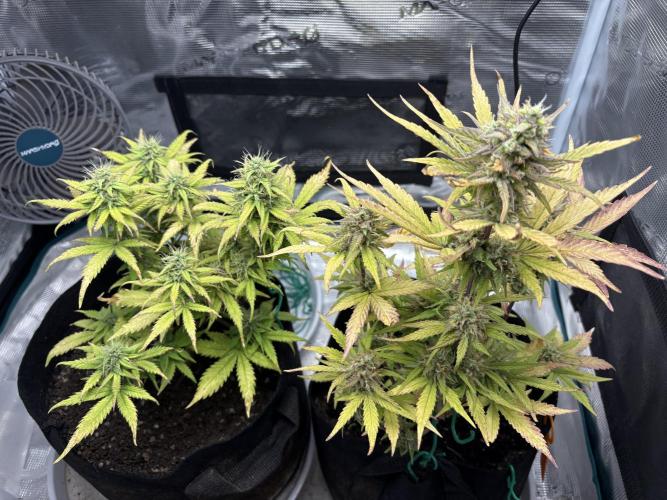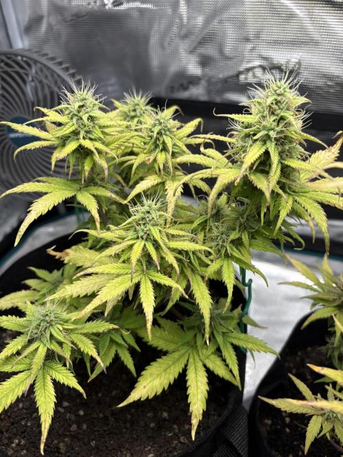 Chloryphyll having problems, lime green, looks all over which is potential ph skewing alkaline. Another thing thay can effect Chloryphyll is iron, if soil gets oversaturated can mess with iron and how it converts in a medium making it unavailable.