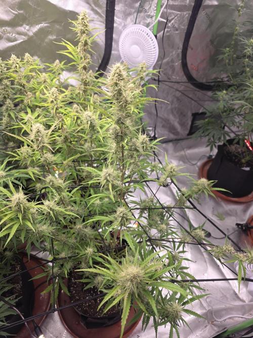 ShizFunkyFresh They looking pretty dang good. They're just about up to the trelis net. They seem to be going into preflower, hoping next week will start the flowering phase.