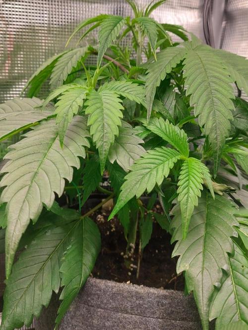 I can see she has a light calmag deficiency, which is likely due to my high humidity and low temperature which keeps the soil quite moist most of the time, preventing me from watering with more nutrients.