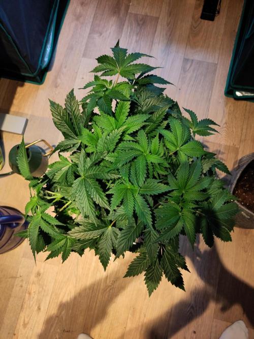 This week the approach was still to slow growth until there’s room in the tent. But hopefully in 1–2 weeks the neighboring plant will be harvested, so it won’t be long. Overall I’ve now topped the plant at the main stem and the four largest side shoots, and at the end of the week it will be moved into its final pot.
