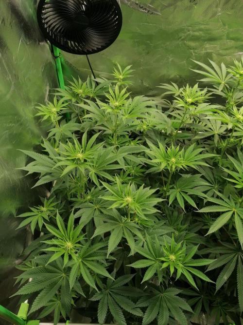 Brujha77 Beginn Woche 5. Es kommen nur immer wieder Lst Clips rein. Ansonsten wird nichts gemacht. Ab und an werden große Fanleaf's entfernt. Denke die 3 werden in 1-2 Wochen dann Richtung Blüte gehen. Tag40 Bei der rechten wurden 2 der unteren Triebe nochmal getoppt. Bei den anderen nur wieder neue Clips und es wurde etwas entlaubt.