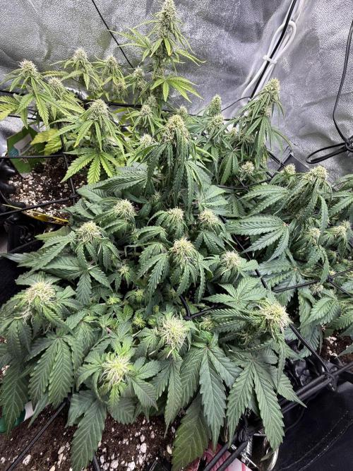Bowser45 They started flowering quite early despite the air pots. Anyways i kept Training them by moving the branches away so that all budsites get good light ( as much as it was possible) . I also used the scrog net for that.they probably wont be getting much taller . I expected the runtz f1 to be this way but the Apple Fritters alsostayed on the smaller side but you can clearly see that they streched more and have longer strechier budsites.