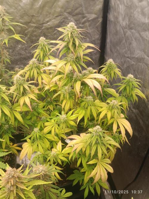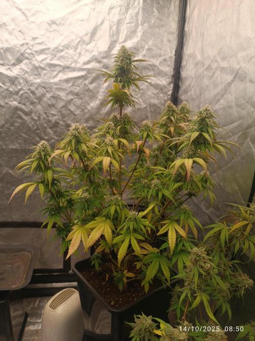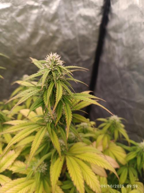 JeyGanesha Questo Frostbanger ha iniziato a fiorire dopo 5 settimane.sta ritardando di una settimana ma in compenso ta crescendo bene forte e si vede anche tanti punti in fiore...sarà piena di fiorelloni spero😉💪🕉️🕉️