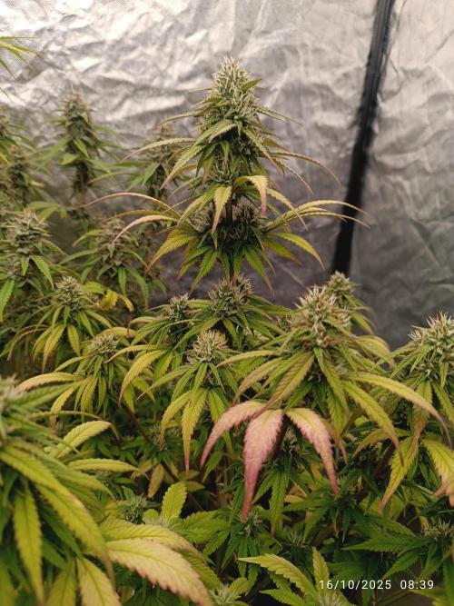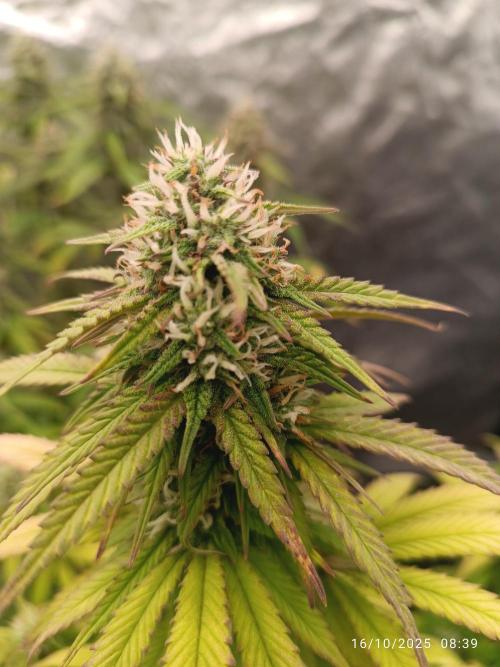 JeyGanesha Questo Frostbanger ha iniziato a fiorire dopo 5 settimane.sta ritardando di una settimana ma in compenso ta crescendo bene forte e si vede anche tanti punti in fiore...sarà piena di fiorelloni spero😉💪🕉️🕉️