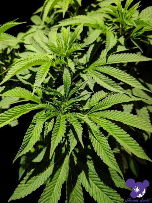 Die Pflanze wirkt relativ kompakt und gut beieinander, was so typisch für eine starken Indicawuchs ist.