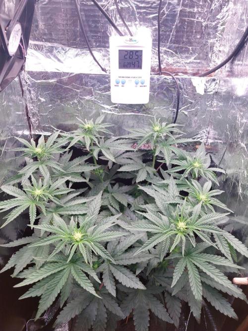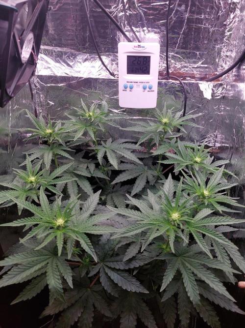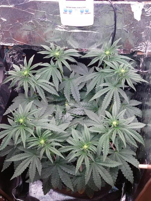 She stretches a little and now looks more like an 80% indica and 20% sativa hybrid from the growth shape,