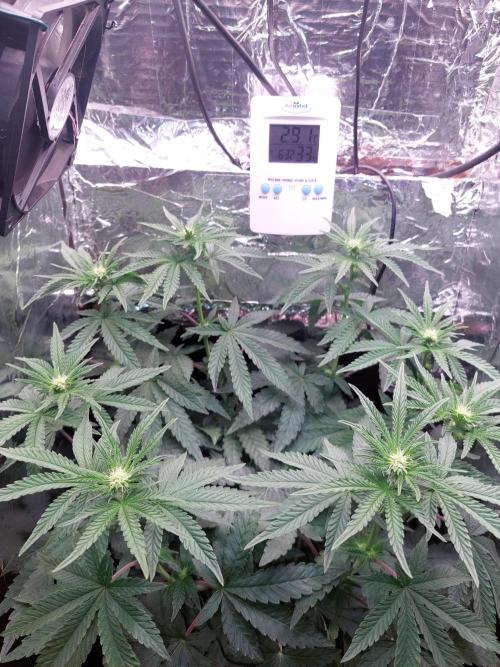 So since she hasn't grown much in the last few days, I decided to send her into flower. The plan is to just tilt her evenly and not to train too much from now on. And I won't start with the fertilizer until next week (if at all).😝