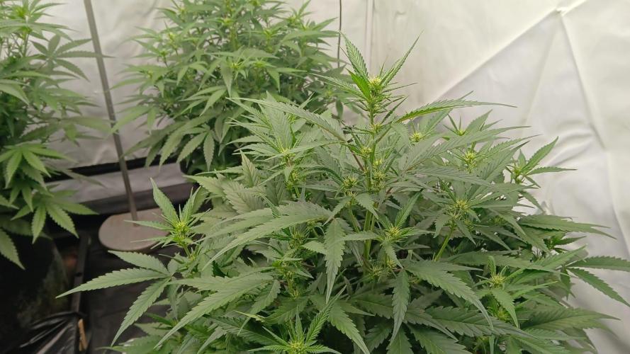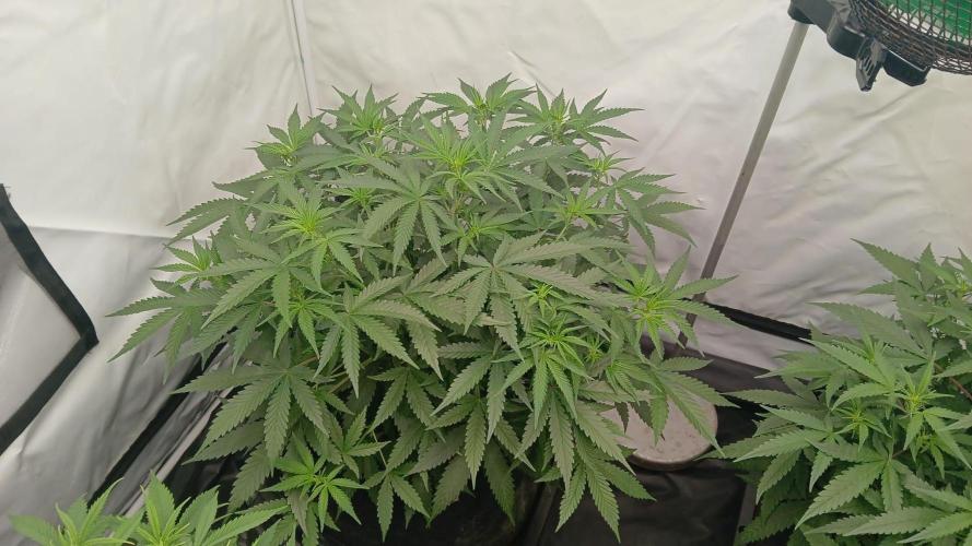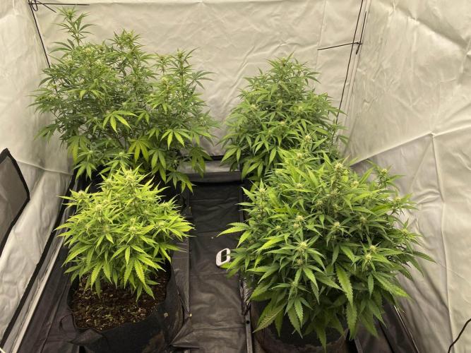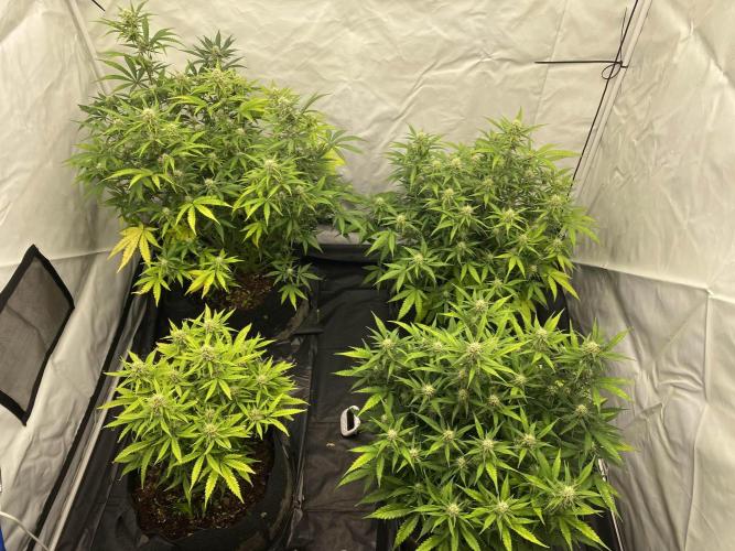 The plant at the bottom right of the tent is showing the smallest bud development out of the bunch and am attempting to top water them all more often to get this to change. So far the Tray2grow's has been awesome for keeping the plants watered.