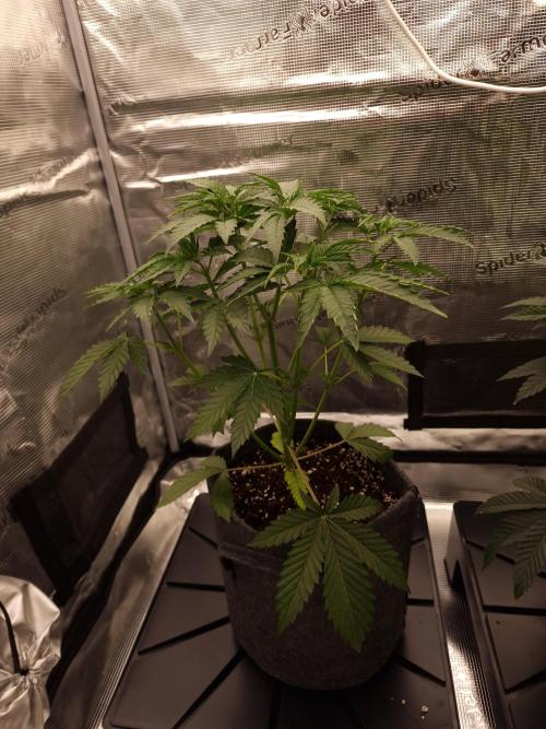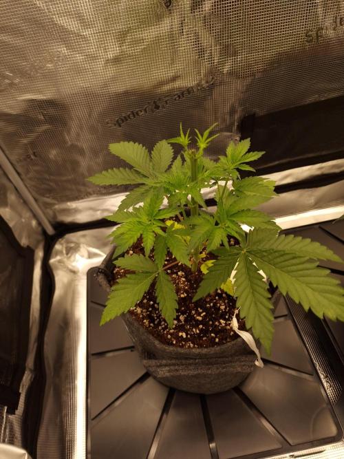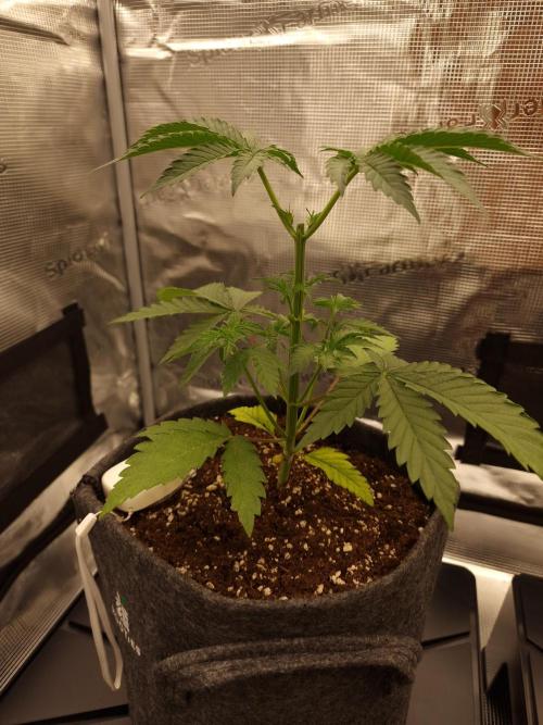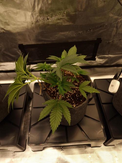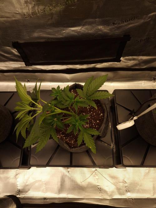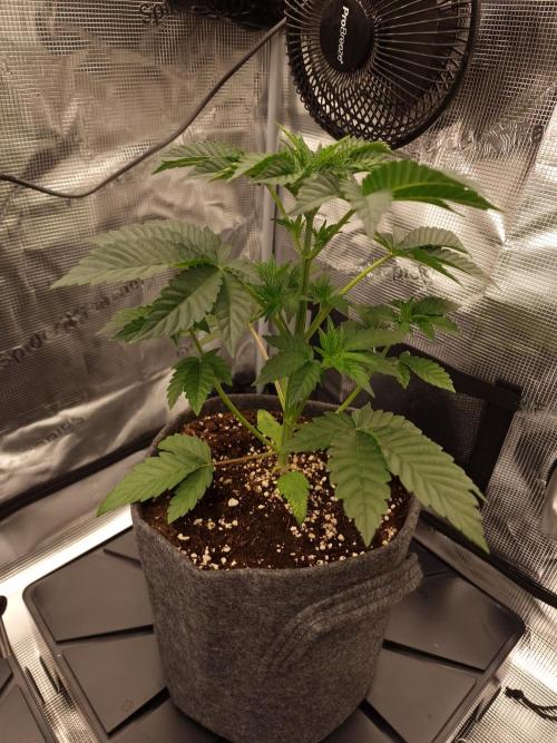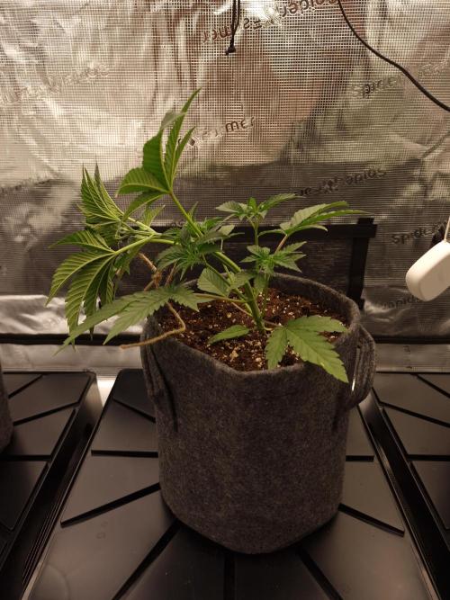 On Day 4 transplanted into 1 L fabric pots with a mix of 50% Biobizz Light Mix, 20% coco, 20% worm humus, 10% perlite.