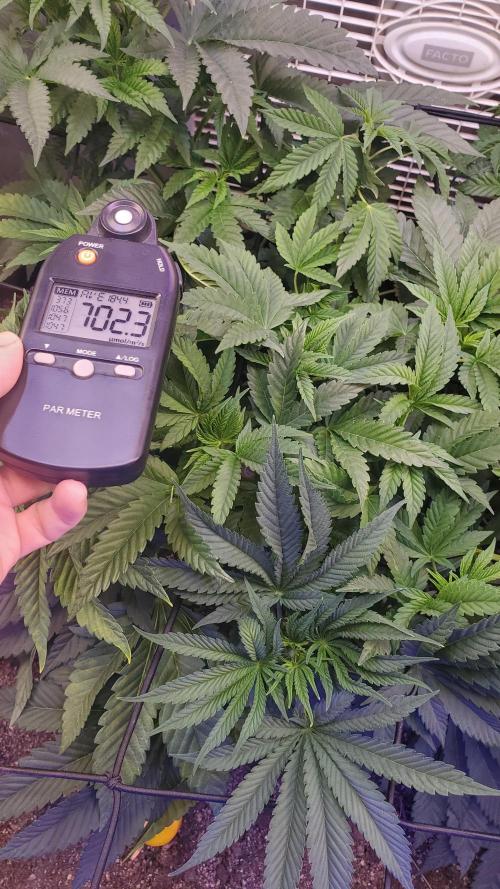 Ultraviolet What's in the soil? What's not in the soil would be an easier question to answer. 16-18 DLI @ the minute. +++ as she grows. Vegetative @1400ppm 0.8–1.2 kPa 80–86°F (26.7–30°C) 65–75%, LST Day 10, Fim'd Day 11 CEC (Cation Exchange Capacity): This is a measure of a soil's ability to hold and exchange positively charged nutrients, like calcium, magnesium, and potassium. Soils with high CEC (more clay and organic matter) have more negative charges that attract and hold these essential nutrients, preventing them from leaching away. EC (Electrical Conductivity): This measures the amount of soluble salts in the soil. High EC levels indicate a high concentration of dissolved salts and can be a sign of potential salinity issues that can harm plants. The stored cations associated with a medium's cation exchange capacity (CEC) do not directly contribute to a real-time electrical conductivity (EC) reading. A real-time EC measurement reflects only the concentration of free, dissolved salt ions in the water solution within the medium. 98% of a plants nutrients comes directly from the water solution. 2% come directly from soil particles. CEC is a mediums storage capacity for cations. These stored cations do not contribute to a mediums EC directly. Electrical Conductivity (EC) does not measure salt ions adsorbed (stored) onto a Cation Exchange Capacity (CEC) site, as EC measures the conductivity of ions in solution within a soil or water sample, not those held on soil particles. A medium releases stored cations to water by ion exchange, where a new, more desirable ion from the water solution temporarily displaces the stored cation from the medium's surface, a process also seen in plants absorbing nutrients via mass flow. For example, in water softeners, sodium ions are released from resin beads to bond with the medium's surface, displacing calcium and magnesium ions which then enter the water. This same principle applies when plants take up nutrients from the soil solution: the cations are released from the soil particles into the water in response to a concentration equilibrium, and then moved to the root surface via mass flow. An example of ion exchange within the context of Cation Exchange Capacity (CEC) is a soil particle with a negative charge attracting and holding positively charged nutrient ions, like potassium (K+) or calcium (Ca2+), and then exchanging them for other positive ions present in the soil solution. For instance, a negatively charged clay particle in soil can hold a K+ ion and later release it to a plant's roots when a different cation, such as calcium (Ca2+), is abundant and replaces the potassium. This process of holding and swapping positively charged ions is fundamental to soil fertility, as it provides plants with essential nutrients. Negative charges on soil particles: Soil particles, particularly clay and organic matter, have negatively charged surfaces due to their chemical structure. Attraction of cations: These negative charges attract and hold positively charged ions, or cations, such as: Potassium (K+) Calcium (Ca2+) Magnesium (Mg2+) Sodium (Na+) Ammonium (NH4+) Plant roots excrete hydrogen ions (H+) through the action of proton pumps embedded in the root cell membranes, which use ATP (energy) to actively transport H+ ions from inside the root cell into the surrounding soil. This process lowers the pH of the soil, which helps to make certain mineral nutrients, such as iron, more available for uptake by the plant. Mechanism of H+ Excretion Proton Pumps: Root cells contain specialized proteins called proton pumps (H+-ATPases) in their cell membranes. Active Transport: These proton pumps use energy from ATP to actively move H+ ions from the cytoplasm of the root cell into the soil, against their concentration gradient. Role in pH Regulation: This active excretion of H+ is a major way plants regulate their internal cytoplasmic pH. Nutrient Availability: The resulting decrease in soil pH makes certain essential mineral nutrients, like iron, more soluble and available for the root cells to absorb. Ion Exchange: The H+ ions also displace positively charged mineral cations from the soil particles, making them available for uptake. Iron Uptake: In response to iron deficiency stress, plants enhance H+ excretion and reductant release to lower the pH and convert Fe3+ to the more available form Fe2+. The altered pH can influence the activity and composition of beneficial microbes in the soil. The H+ gradient created by the proton pumps can also be used for other vital cell functions, such as ATP synthesis and the transport of other solutes. The hydrogen ions (H+) excreted during photosynthesis come from the splitting of water molecules. This splitting, called photolysis, occurs in Photosystem II to replace the electrons used in the light-dependent reactions. The released hydrogen ions are then pumped into the thylakoid lumen, creating a proton gradient that drives ATP synthesis. Plants release hydrogen ions (H+) from their roots into the soil, a process that occurs in conjunction with nutrient uptake and photosynthesis. These H+ ions compete with mineral cations for the negatively charged sites on soil particles, a phenomenon known as cation exchange. By displacing beneficial mineral cations, the excreted H+ ions make these nutrients available for the plant to absorb, which can also lower the soil pH and indirectly affect its Cation Exchange Capacity (CEC) by altering the pool of exchangeable cations in the soil solution. Plants use proton (H+) exudation, driven by the H+-ATPase enzyme, to release H+ ions into the soil, creating a more acidic rhizosphere, which enhances nutrient availability and influences nutrient cycling processes. This acidification mobilizes insoluble nutrients like iron (Fe) by breaking them down, while also facilitating the activity of beneficial microbes involved in the nutrient cycle. Therefore, H+ exudation is a critical plant strategy 