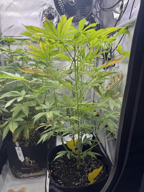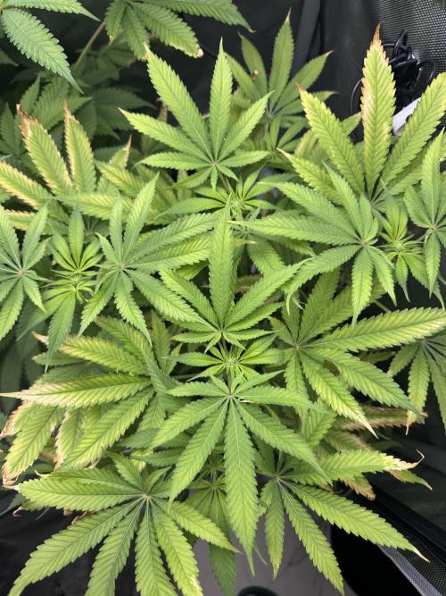 Yeah, I don't not what to say. This genetic is insane and she will be a monster, much bigger than the rest in the tent and I am kinda scared haha. Thinking about topping the side branches but the soil volume is not thaaaaat big. That‘s why I don't want to have too many big branches to not underfeed her in flower. So I don't really know how to proceed. The Blue Zushi needs some more weeks and by then this plant will be absolutely crazy.