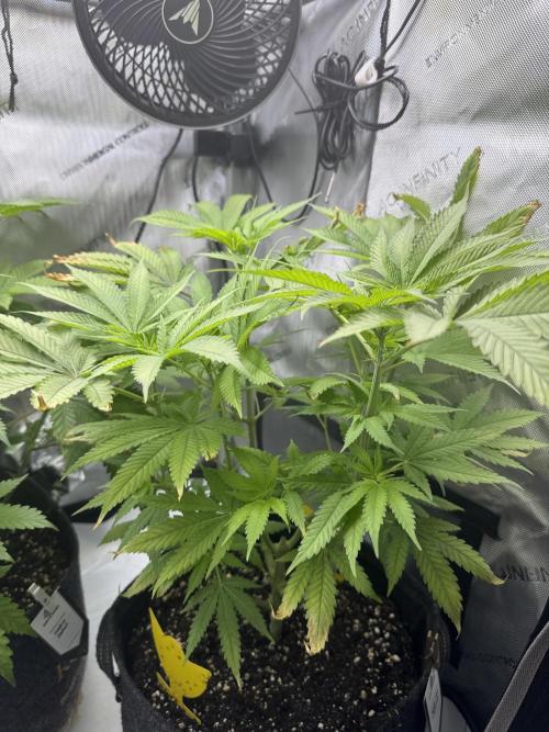 Yeah, I don't not what to say. This genetic is insane and she will be a monster, much bigger than the rest in the tent and I am kinda scared haha. Thinking about topping the side branches but the soil volume is not thaaaaat big. That‘s why I don't want to have too many big branches to not underfeed her in flower. So I don't really know how to proceed. The Blue Zushi needs some more weeks and by then this plant will be absolutely crazy.