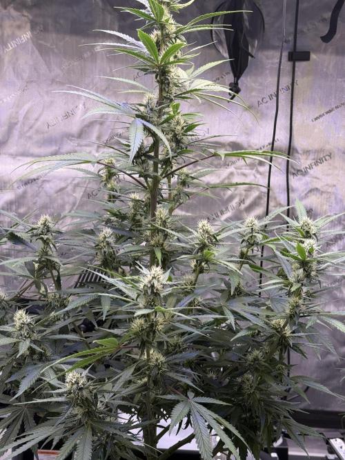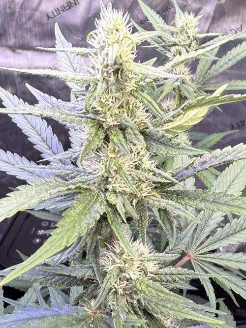 10/3-Good week. She's preflowering now. I've switched to bloom nutes. Did some more minor defoliation and lst to keep the canopy as even as possible. Looking forward to see if we're get those purplish buds. Overall this one feels good as we head into primetime.