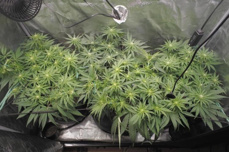 Germaican Now we are at day 21 of flip and the early budlets are starting to form. I was busy keeping the environment warm enough at nights, dipping under 18C is a bad idea which kept me busy. Also keeping the dehumidifier, the heater and vent intake/outtake stable and in balance was the main hurdle. For now the day seems to be balanced and without any issues 59% rh, 1.1vpd to 1.2, 21 to 25C The night is a bit on the humid side with 18C at 67Rh the dehum is constantly toggling on and off every 30 min to engage against the microclimate. The characteristics have changed; LB1 is vigorous and slim LB2 is very balanced a indica leaning variant with less stress signs and a more floral smell MW she is one of a kind. She grew slow now she had a push, but she grew very wide after the topping. Most budlets did not make it over the net. PEX decided to not grow at all and get bushier day by day, also a heavy indica leaning variant it seems. Had to up her a few cm which is not enough still. They all seem happy and healthy, some browning on the tops, i guess from the too fast growth and reaaching too close to the lamp and my constant touching and traning into the net might have cause that. Feeding : They drink a lot. Roots are reaching out of the pot. I can fully soak each watering and they push it upwards into the new leaves which are light greenish and have a small brown at their tipps. Slight over feeding but still keeping it on the low end. Defoil at day: 18/21 Smell started mostly at nights, light off. Its calm. Waiting on full flower and watching closely.